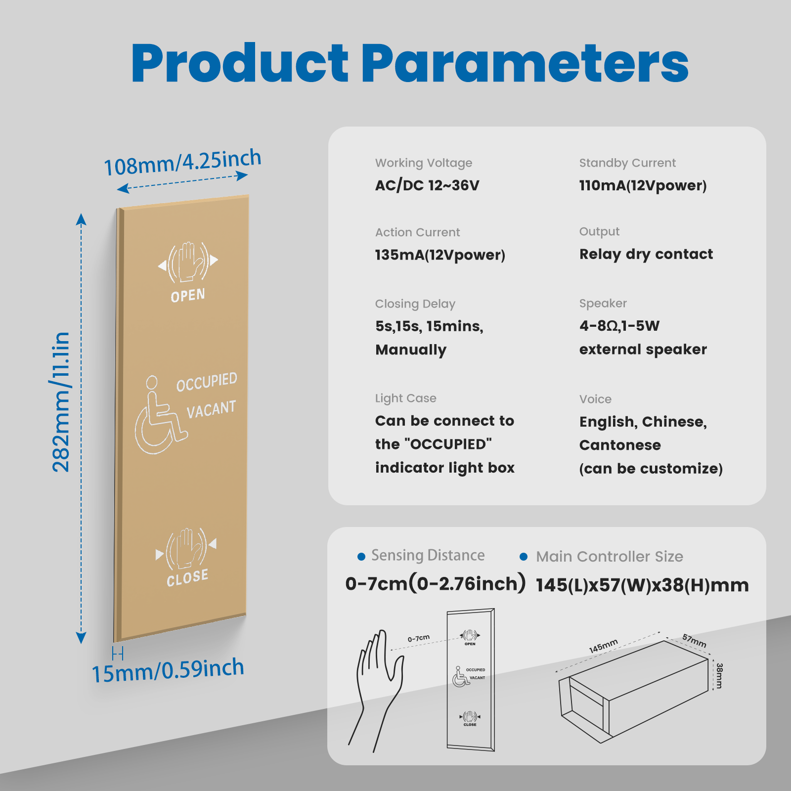 Cantonese optional and customized voice; - Both the inner and outer panels have text light instructions,